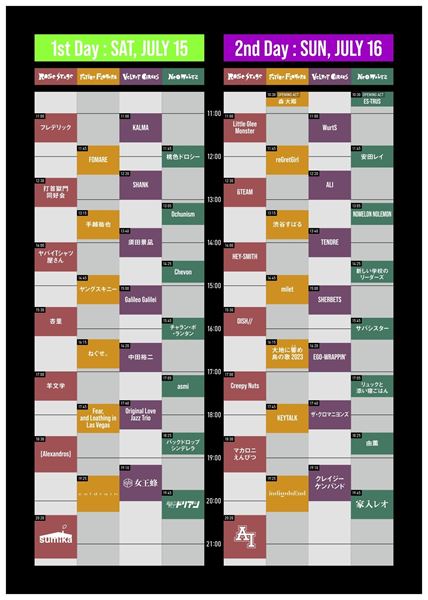 ・ROSE STAGE:フレデリック / 打首獄門同好会 / ヤバイTシャツ屋さん / 杏里 / 羊文学 / [Alexandros] / sumika