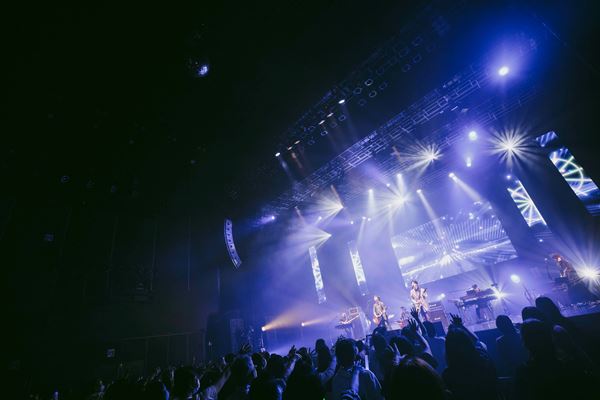 しかし、「元気?って聞いたのはいいけど、次はそんな明るい曲じゃない……」と苦笑いの田中。「でも嬉しいと思う、次の曲は」と前置きしつつ「高校1年生のときに、僕がベッドの上で作った曲を歌いたいと思います」と始まったのは『天つ風』。スクリーンには田中が楽曲を制作していたと当時のシチュエーションを感じさせるような夜空が見える窓が映し出される。どこかエモーショナルな気持ちが高まっていく中、『合言葉』、『花びら、始まりを告げて』と続き、さらにその感情を掻き立てていく。