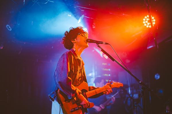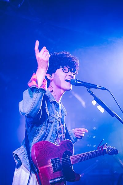 「感極まって僕が泣きそうになっちゃう(笑)。まだ始まったばかりなのに。今日は初ワンマンなので持ち曲をすべて演奏します。次に演奏する曲は、去年の春に北海道から上京してとても孤独を感じていたときに書いた曲で、自分でもこの曲に癒されました。Aメロを書いたあとに発熱してしまいました(笑)。それくらい自分にとって思い入れのある曲です」と言ってパフォーマンスしたのは「明日で待ってて」。6/8拍子が印象的なこの曲はぐいぐいと腕を引っ張られて不安な毎日の外側へ連れ出されるような爽快感がある。ライブでの振り切れたボーカルがオーディエンスを圧倒していった。