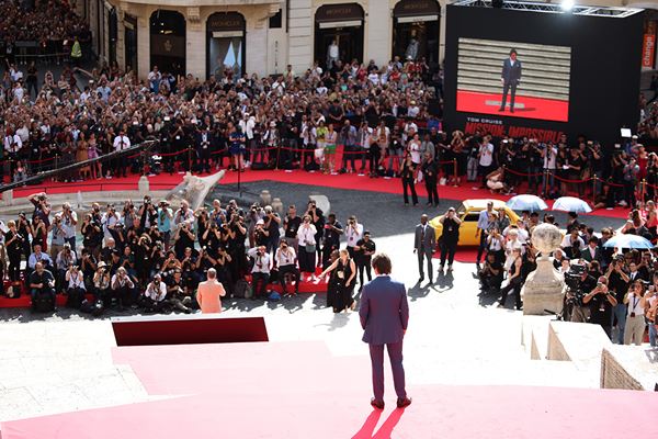 イベントには主演のトム・クルーズをはじめ、常連のサイモン・ペッグやヴィング・レイムス、レベッカ・ファーガソン、さらに前作から参加したヴァネッサ・カービー、新たに加わるヘイリー・アトウェル、ポム・クレメンティエフといったキャストに加え、5作目から本シリーズのメガホンをとるクリストファー・マッカリー監督らが集結。ローマ中を見渡せる世界的にも人気の由緒ある名所・スペイン広場を完全封鎖し、大階段に大きく敷かれたレッドカーペット会場には、アメリカ、カナダ、ブラジル、メキシコ、イタリア、ドイツ、フランス、ノルウェーなど世界中から60以上のマスコミが詰めかけた。