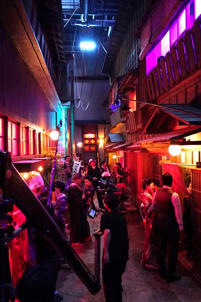 そんな本作の現場を訪れたのは、昨年の8月16日。東映東京撮影所最大の第6ステージに足を踏み入れると、関東大震災からの復興途上である花街がまるごと出現。木造2階建ての飲み屋や娼館が軒を連ね、伏見稲荷大明神の脇には本物の柳の木や草が植えられたその街並みは、美術の清水剛(『私は貝になりたい』『マチネの終わりに』)が大正時代の向島の遊郭(私娼街)からイメージしながら2カ月かけて自由に作り上げたものだ。