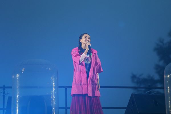 現在公開中の実写映画『リトル・マーメイド』は、ディズニー音楽の巨匠アラン・メンケンと新進気鋭のリン=マニュエル・ミランダが手がけた楽曲のクオリティの高さでも話題を呼んでいる。ディズニーには欠かせない“音楽”をメインとした本イベントにうってつけのスペシャルゲストである豊原は、『リトル・マーメイド』より「パート・オブ・ユア・ワールド」、『アナと雪の女王』より「レット・イット・ゴー」を生歌唱。霧に包まれ、神秘的な雰囲気を増した山中湖で、可憐さを携えながらも力強い歌声で会場を圧倒した。