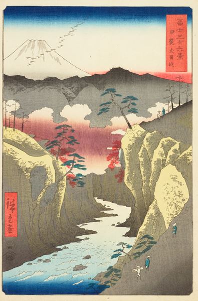 幕末に大きな人気を集めた広重は、江戸の名所絵で名高いが、諸国の自然を題材にした作品も多数描いた。若い時期から、江戸から遠く離れた東海道の名所なども題材としていたが、特に 40 代頃からは甲州や房総など、実際に様々な場所へ旅に出ていた。旅先で自然を写した経験が、その後の作品に反映されていると考えられている。