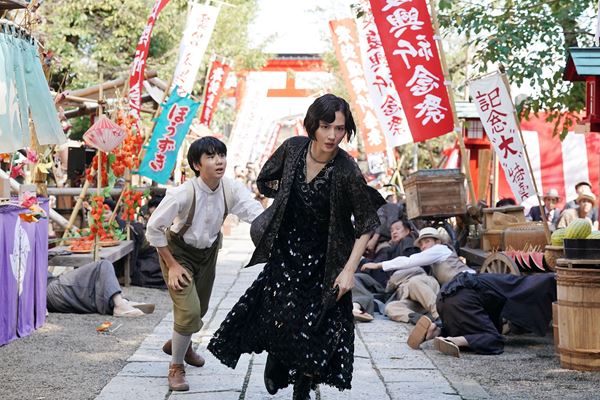 大正時代を再現する大規模セットを組んで撮影が行われたのは東映大泉撮影所。冬の『レジェンド&バタフライ』の東映京都撮影所のセットといい、やはり伝統のあるスタジオは底力がある。加えて、大正モダン時代をみごとに再現した、黒澤和子の衣裳デザイン、稲垣亮弐のヘアメイクデザイン。そして、ガンマニアもおそらく納得の銃火器の数々とガンアクション。