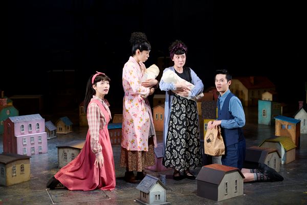 松尾を中心に、役者たちは語り手としても舞台上に存在する。語り手が丁寧に状況を説明しながら進むこの作品は、子どもたちの初めての観劇にもぴったりだろう。登場人物たちが歳を重ね、変化していく様子を語りとともに観るのは、絵本を読んでいるような観劇体験。