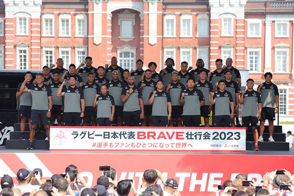 「ラグビー日本代表BRAVE壮行会2023 #選手もファンもひとつになって世界へ」に出席したラグビー日本代表 (C)JRFU