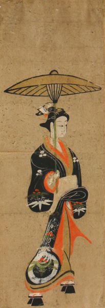 起源は諸説あるというが、一説によると、安土桃山時代から江戸時代へと移行した慶長年間に京都の本願寺が東西に分立した際に、門前町から立ち退きを命じられた絵仏師たちが、追分の地に転居し、旅人相手に手頃な値段の仏画を販売したことが始まりだとか。やがて仏画のほかに、神社の絵馬に見られる図柄や風俗画などの幅広い画題が取り入れられ、庶民の間に浸透するなかで、人形浄瑠璃や歌舞伎、浮世草子などの文学作品、さらに道徳哲学の分野にも影響を与えるようになった。