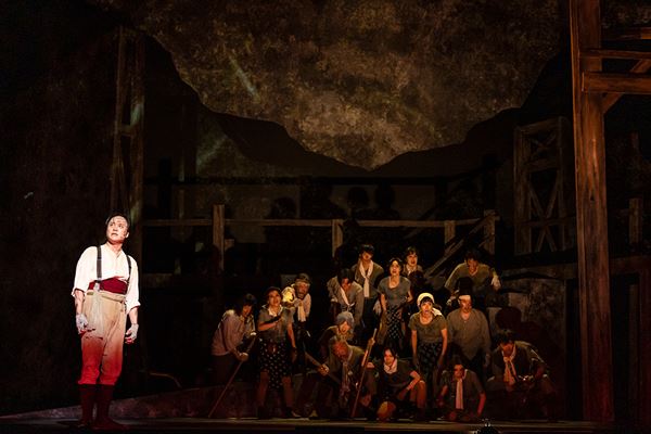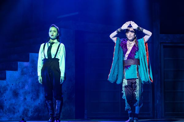 オリエンタルな曲調やタンゴ、コミックソングからロックまで、新藤の手がける実に多様な楽曲が登場人物の来し方行く末を彩った。中でも、桃風役の美弥が中性的な魅力を振りまくシーンで展開した「桃風の啖呵売」はラップナンバー。炭鉱夫が集まる酒場の女主人・アケミ役の玉置成実も「この世はジョーク」でダンサーを引き連れる。いずれもショーアップされ、観客の目に楽しく映るだろう。