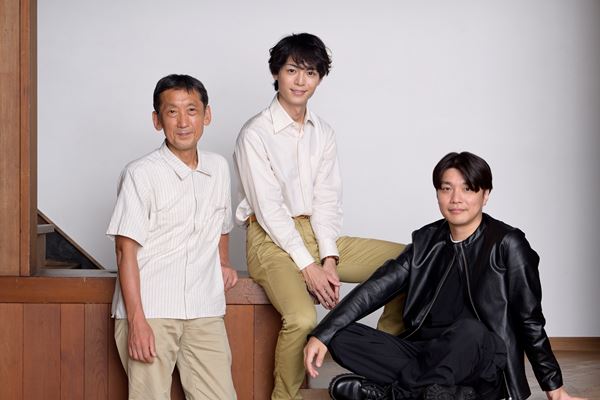 左から)舞台『仮面山荘殺人事件』脚本・演出の成井豊、出演の溝口琢矢、畑中智行 撮影:荒川潤