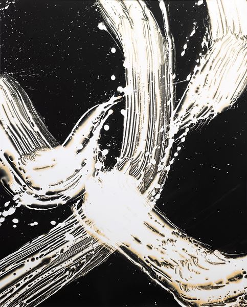 その他、文字の起源や意味の考察として、写真暗室で、印画紙の上に現像液や定着液に浸した筆で文字を書いたシリーズ「Brush Impression」や、同展の舞台・渋谷区立松濤美術館を設計した白井晟一(1905-1983)の世界を「本歌」とした展示も実現。