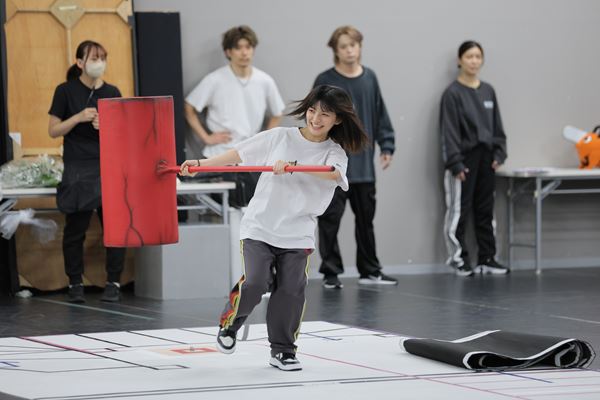 他にも、姫野に佃井皆美、荒井ヒロカズに鐘ヶ江洸らアクションに定評のあるキャスト、岸辺に谷口賢志、東山コベニに岩田陽葵、圧倒的な強さでチェンソーマンに敵対する重要なキャラ・サムライソードにオレノグラフティがキャスティングされている。この日の稽古でも、コベニが大きな行動を起こす重要なシーンで鬼気迫る演技に、稽古場の空気が一気に引き締まり、物語の熱が増した。
