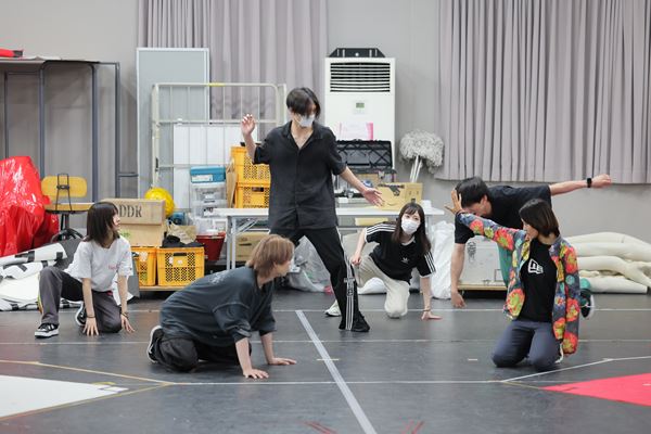 アクションシーンでは、頭と両腕にチェンソーの歯を装着したチェンソーマンがステージ上を飛び跳ね駆け回り、敵対する悪魔たちをなぎ倒していく。稽古ではまだ50%程のアクションということだったが、アニメの迫力さながら、わらわらと群がる悪魔たちを蹴散らす爽快さと、チェンソーマンの少しゾッとするおぞましさに目が離せなくなる。さらにそこから、滑らかにダンサーに入れ替わる場面もあるため、チェンソーマンがどんなダンスで心情や世界観を表現するのか、この舞台化ならではの演出は必見だ。