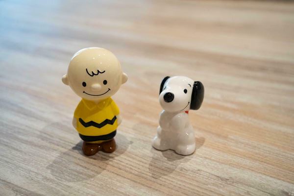 スヌーピーとチャーリー・ブラウンの陶器製のフィギュア。