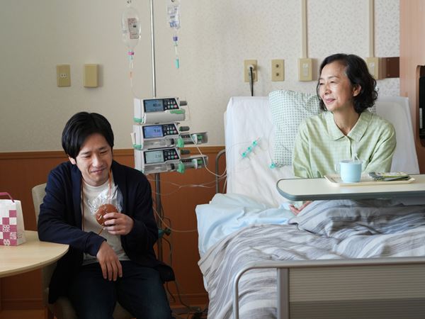 普段通りに見舞いに訪れている悟は、おもむろに発せられた母の言葉に「また、何?」と照れ笑いするが、玲子は「人には自分だけの幸せのかたちがある。それを信じて貫きな」と、母として、人生の先輩として、まっすぐな言葉を重ねる。悟は、そんな愛にあふれた願いを受け取り、静かにうなずき、幸せになることを約束する。穏やかで何気ない場面だが、悟と母・玲子が過ごしてきた人生が垣間見えるような、行間を想像させる奥深いシーンに仕上がっている。