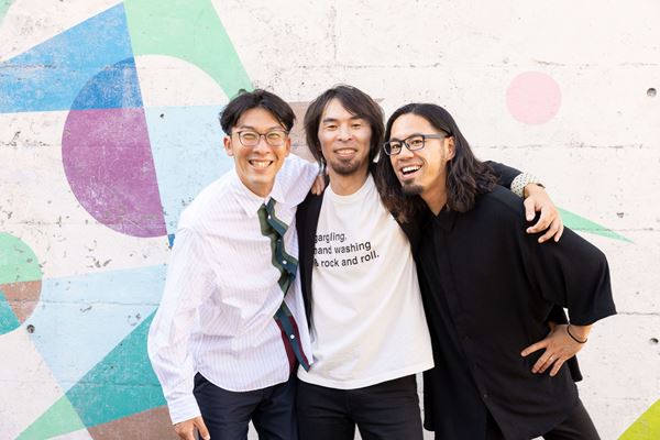鶴 左から)笠井“どん”快樹(Ds&Cho) 、秋野温(Vo&Gt)、神田雄一朗(Ba&Cho)