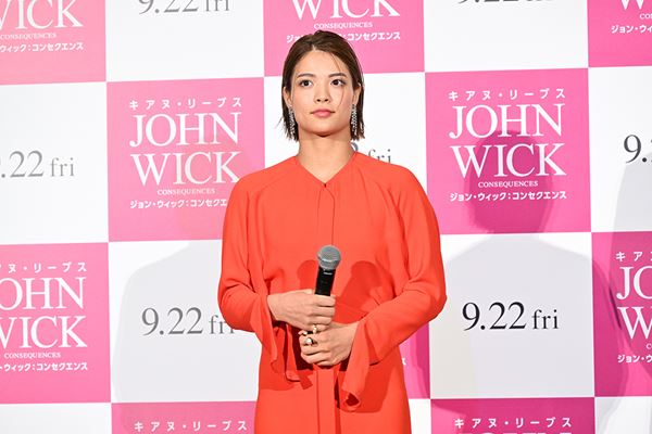 そんな中、花束ゲストとして『ジョン・ウィック』シリーズを全作見ているほどの大ファンという藤岡と阿部がステージに登壇。藤岡は劇中で展開されるアクションを褒めちぎりながら「今回は特に素晴らしい。アクションはプロ対プロのリアルなアクションが随所にちりばめられており、息をつかせぬ速い展開がある。銃の扱い、カーアクション、日本の刀剣や武道や総合格闘技、そのすべての扱いが素晴らしい」と大興奮。阿部も「すべてのアクションが魅力的。柔道も入っていたりして迫力があって瞬きが出来ない。ジョン・ウィックは強い人で私も憧れています。大好きな作品の監督にお会いできて嬉しい」と喜色満面。