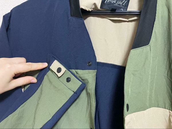 【ワークマン 耐久撥水トラベルシェルカーディガン】袖口のボタンは2か所ありサイズ調節可能