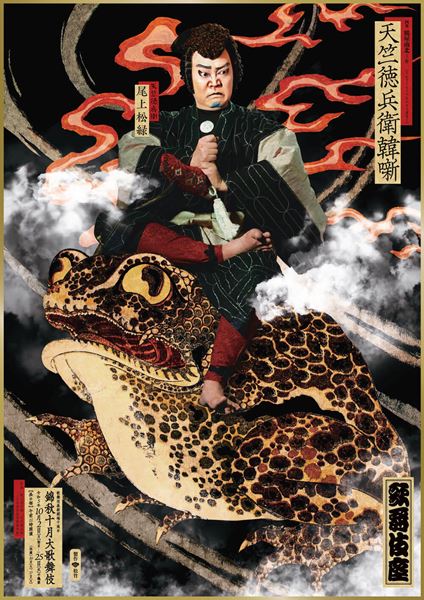 『天竺徳兵衛韓噺』は江戸時代初期、東南アジア諸国の見聞録を残した実在の商人・徳兵衛を主人公に、南北作品ならではの奇抜な趣向が散りばめられた名作。祖父・二世松緑、父・初世辰之助も勤めた所縁ある徳兵衛を、当代の尾上松緑が初役で勤める。松緑は開幕前、「私も久々に白髪ではないかつらをかぶり、若々しい役に心ときめかせております。エンターテイメント性に溢れた楽しい芝居を御目に掛けたいと考えております」とコメント。数々の仕掛けと、ひとときも目の離せない展開をドラマティックに魅せていく。物語の中で、宗観から妖術を譲り受けると次々と摩訶不思議な妖術を繰り出す徳兵衛。大屋根に出現する大蝦蟇(おおがま)や、徳兵衛自身が蝦蟇の姿となって見せる立廻りなど、ケレン味溢れる演出に客席から万雷の拍手が送られた。