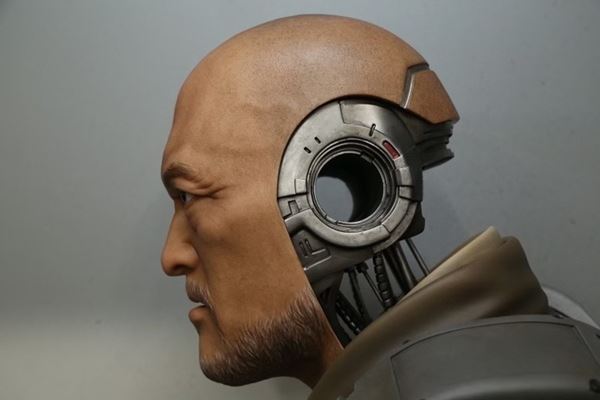 作成された謙ドロイドは、鋭い眼差しや肌質までもがまさに人間そのもので、ハルンと瓜二つに見える。その後頭部から耳にかけてはもちろん、ハルン同様繊細な機械のビジュアルとなっている。なお、“謙ドロイド”は新宿などで展示される予定だ。
