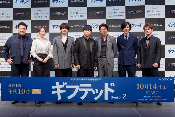 すべて見る10月14日(土) よりWOWOWで放送・配信される『WOWOW×東海テレビ共同製作連続ドラマ ギフテッド Season2』の第1話完成披露試写会付き舞台挨拶が、10月12日(木) に都内で開催。増田貴久、浮所飛貴、泉里香、小手伸也、中山優馬、田辺誠一、高橋克典が登壇した。