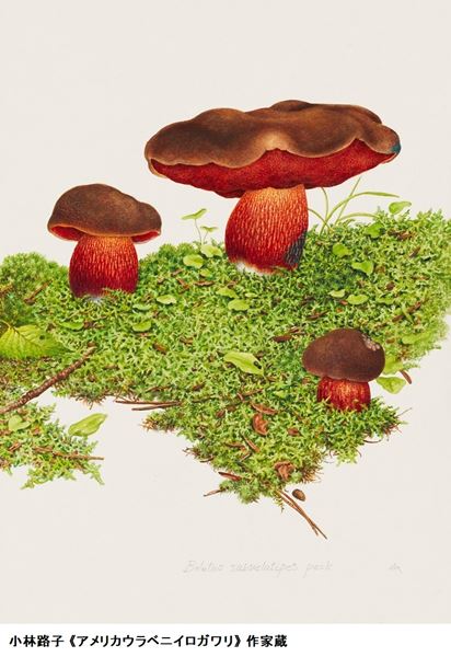 出品作家は、多種多様な環境に発生するキノコを描き続けてきた小林路子、明治末から昭和期の画壇で活躍しながら、少年の頃から草花を愛で記録し続けた辻永(つじ・ひさし 1884-1974)、木象嵌師としての研鑽をつんだ後、日本におけるバードカービングの第一人者となった内山春雄(1950-)、詩的で実験的な作風で戦後の写真界で活躍し、後半生は競走馬の取材と撮影に集中した今井壽惠(いまい・ひさえ 1931-2009)、大学時代、牧場で出会ったウシに魅せられ、現在も酪農の仕事をしながらウシをモチーフに木版画を制作している冨田美穂(1979-)、そして世界各国の動物園やアフリカの野生のゴリラと心を交わし、その姿を描き続けている阿部知暁(あべ・ちさと 1957-)の6名。