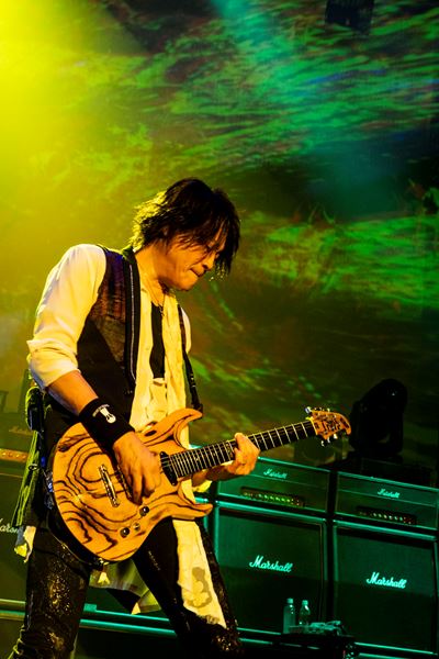 今回のツアーを意識して、ファンとの掛け合いや合いの手をリッチに盛りこんだこの粋な新曲に始まり、オープニングブロックにはコール&レスポンスがたっぷり楽しめる賑やかなナンバーが居並ぶ。KISHOWが客席にマイクを向け、手を振り上げて叫び、e-ZUKAがギターのネックを客席に突き出して煽るたびに、オーディエンスが突き上げる拳とジャンプもどんどん激しく、高くなる。今日は、そしてこのツアーは、俺たちに負けずにお前らも声出して、全身全霊思い切り騒ぐんだぜ!というメッセージが、彼らが選んだ楽曲によって、雄弁に語られていた。