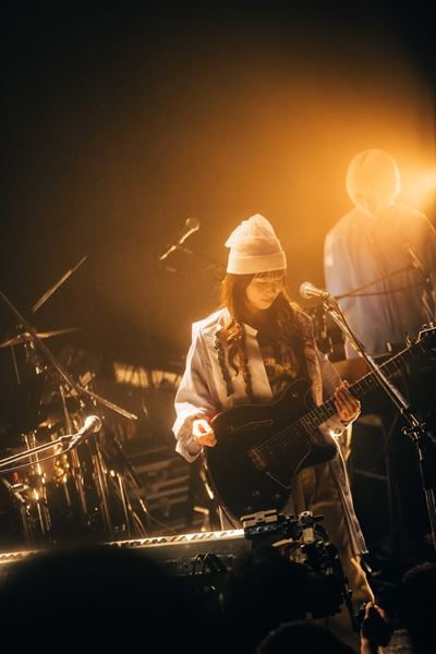 19時20分。バンドメンバー4人とともにステージにとたがあらわれた。枕元にあるようなベッドサイドランプを“パチっと”付けてキーボードへ。ライブのはじまりの合図だ。これは、SNSでの音楽発信を通じて拡散された彼女の音楽性を示すキーワード、ベッドルームポップをあらわしているのかもしれない。
