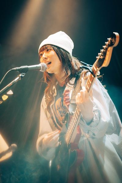空気は一変して、アコースティックな「一弦」では、アコギ片手に、淡いサウンド感が紅葉色の照明とシンクロ。ギターの弦を擬人化しながら、自らの心情と重ね合わせる歌に心を震わされる。続いて、緑のギターへと持ち替え、ピアノのイントロダクションから配信されたばかりの新曲「コワレモノ」へ。泣きのせつなポップの披露だ。