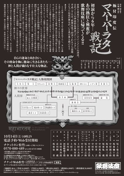 『極付印度伝 マハーバーラタ戦記』は、世界を席巻するインドエンターテインメントの源流、古代インドの神話的叙事詩『マハーバーラタ』をもとにした、神と人間が織りなす壮大な物語。平成29(2017)年に新作歌舞伎として上演され、古代インドの壮大な物語と歌舞伎との新たな融合が大きな話題となった。6年ぶりの再演となる今回、菊之助は前回に引き続き主人公・迦楼奈(かるな)とシヴァ神、今回が初出演となる菊之助の長男丑之助は、我斗風鬼写、ガネーシャのそれぞれ2役を勤める。