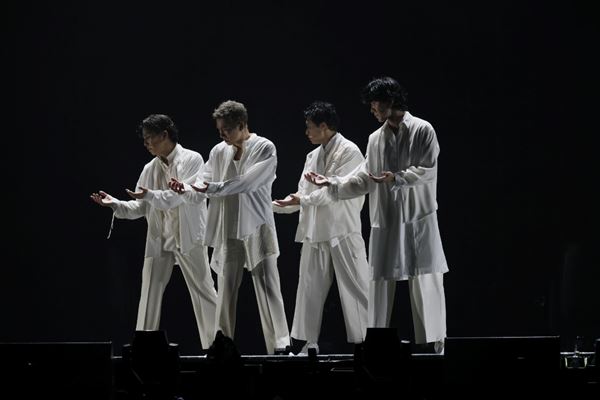 この日に感じた彼らの覚悟は、じつはもうひとつある。それは、s**t kingzの“ダンスが好きだ”という気持ちは、ダンスで人を幸せにしたいという願いにつながり、ひいては世界への祈りに通じているということ。終盤では、国内外問わずこれまで出会った人たちの写真や、そこへの想いを映したあと、チャーリー・チャップリンが映画『独裁者』の中で聞かせた演説に沿って踊るという斬新な一幕も。「希望を捨てるな」「自由のために闘え」と徐々に早口になり、感情を露わにしていくチャップリンの声にあわせ、4人の動きもどんどん過激になっていく。音楽のない、自由を説く声に合わせたダンスは、これまで経験したことのない強いメッセージ性を持って届けられた。