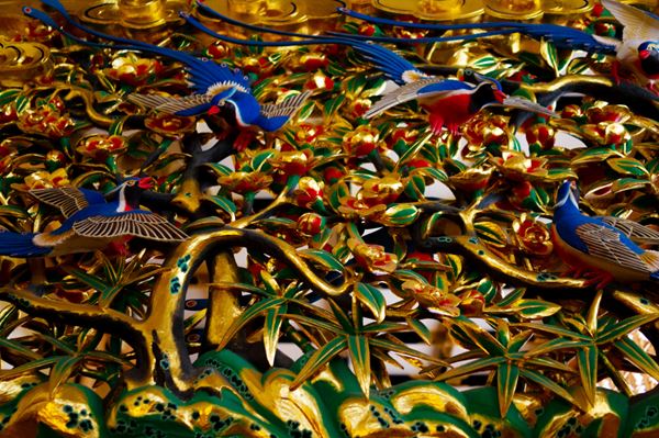 さらに今回は本丸御殿の夜間特別公開もある。表書院二之間で「松楓禽鳥図」を観覧できるほか、江戸幕府将軍が滞在した上洛殿「上段之間」の北側に設えられた「菊之廊下」で、紅白の菊と鮮やかな流水が描かれた金碧の障壁画を鑑賞することもできる。
