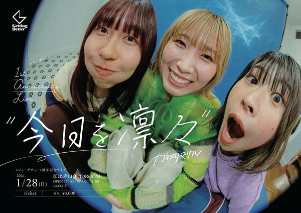 すべて見る大阪発3ピースガールズロックバンド・カネヨリマサルが、メジャーデビュー1周年記念ライブ『今日を凛々』を2024年1月28日(日) に東京・LIQUIDROOMで開催することが決定した。