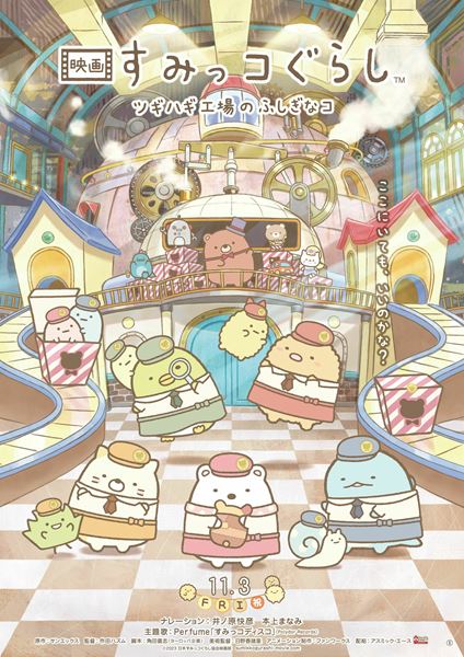 12月8日(金) より公開される映画『ウォンカとチョコレート工場のはじまり』と、現在上映中の『映画 すみっコぐらし ツギハギ工場のふしぎなコ』のコラボレーションが実現し、特別ビジュアルが公開された。