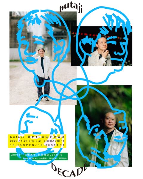 なお10周年記念公演では、アルバム『アウトサイド』からbutajiのジャケットを手がけている我喜屋位瑳務が10周年を記念して書いた絵がステッカーとして来場者にプレゼント。また我喜屋デザインのTシャツと、フライヤーをデザインした小田雄太デザインによるロンTも発売される予定だ。