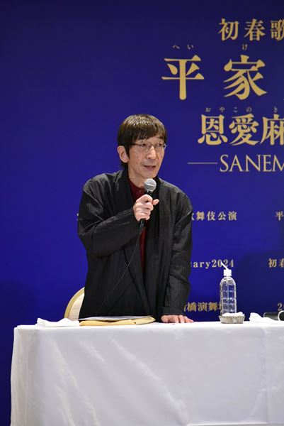 副題「恩愛麻絲央源平(おやこのきずななかもげんぺい)」には、團十郎の亡き妻でぼたんと新之助の母である「麻央」の名前が入っているが、これは演出・補綴を務める石川耕士のアイディアによるもの。團十郎は「ひな鶴の父・実盛、牛若丸の母・常盤御前という、別々の“親”を演じ分けるということで、(テーマが)親子の絆という中で、石川さんが麻央のことを意識して脚本を書いてくださって、その文字(=麻央)を入れたいというお話をいただいて、いくつかの案をくださった中から選んで、妻の名前が入った副題にさせていただきました」と説明。物語自体は「あくまでも源氏と平家の中での親子の情愛の話」と断りつつ「ご覧になった方が、堀越家のことを想像されるかどうかはまた別の話」と語った。