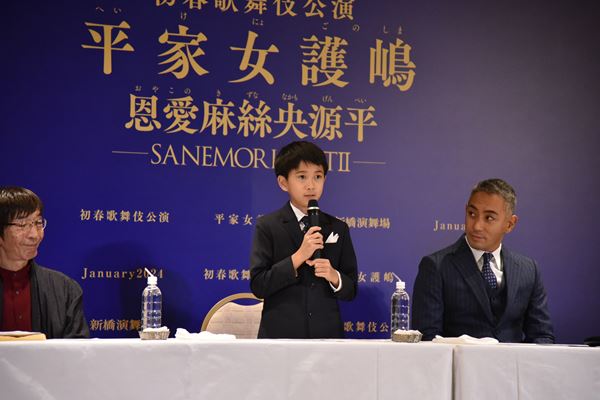 ぼたんも「父が実盛、私がひな鶴で、一緒に話をすることが多いんですが、緊張、ドキドキがあります。でも、3人で一緒に舞台に立ち、父とセリフを言い合える古典に出演できるのは貴重な経験だと思います」と笑顔を見せた。