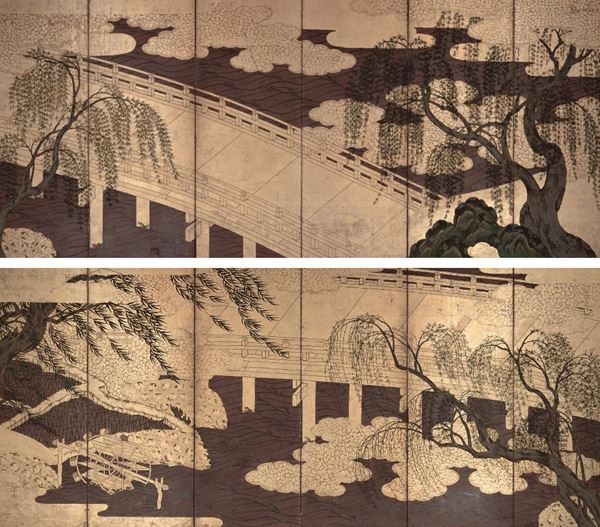 同展は、2019年に好評を博した『金屏風展―狩野派・長谷川派・琳派など―』から趣向を変えて、出品作、展示構成ともに装いを新たに「黄金の世界」を紹介する展覧会だ。今回は、金屏風における金の多種多様な表現に着目し、「金雲」「金銀」「金地」という3つのテーマから、バラエティ豊かな金屏風の収蔵品約30件を展観する。