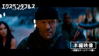 今回解禁された本編映像は、仲間の仇を討つために再起した新生“エクスペンダブルズ”が見せる、迫力満点のアクションシーンと初陣とは思えないチームワークが見どころとなっている。