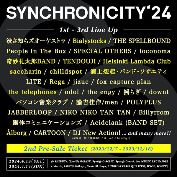 ぴあ 総合TOP > 『SYNCHRONICITY’24』第3弾でBialystocks、奇妙礼太郎BAND、テレフォンズら10組が追加