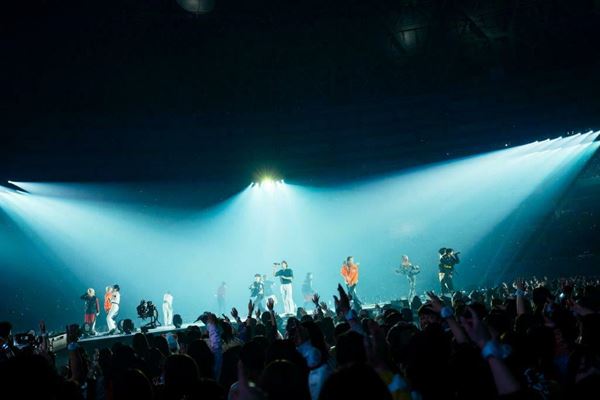ATEEZの充実のライブに続き、オオトリはBE:FIRST。「最高の音楽仲間を連れてきたぜ!&TEAM!」とコールし、コラボでの「Boom Boom Back」など、新たなアプローチで観客を盛り上げた。