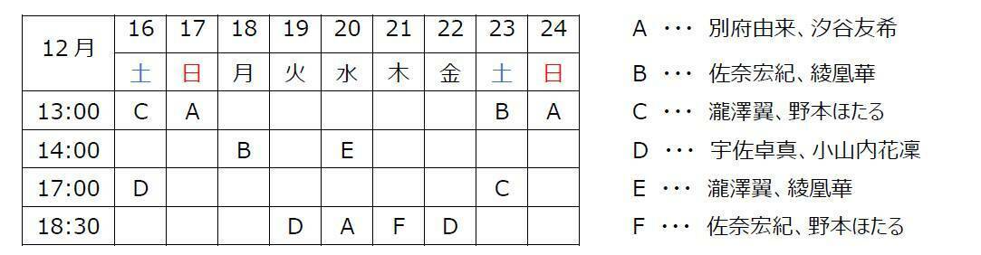 出演:綾凰華、宇佐卓真、小山内花凜、佐奈宏紀、汐谷友希、瀧澤翼(円神)、野本ほたる、別府由来(50音順)