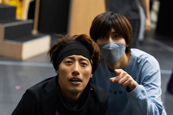 公演まで約10日というタイミングで行った稽古場取材では、導入と恋愛リアリティショーのシーンを見ることができた。