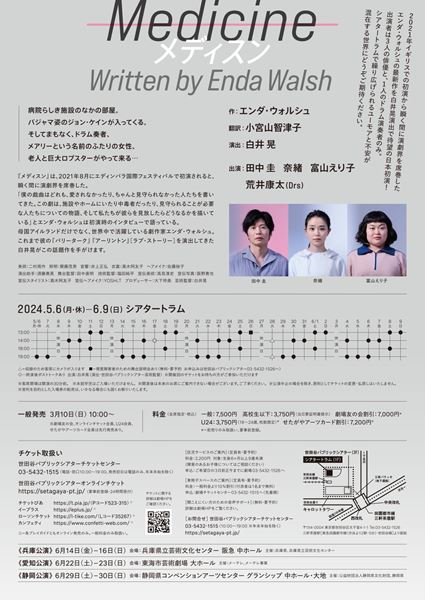 『Medicine メディスン』は、アイルランド生まれの劇作家・脚本家のエンダ・ウォルシュによる最新作。2021年8月にエディンバラ国際フェスティバルで初演、9月にはゴルウェイ国際アーツフェスティバルで上演されると、11月にはニューヨークでも上演。イギリスの新聞各紙に絶賛のレビューが掲載されるなど話題を集めた。