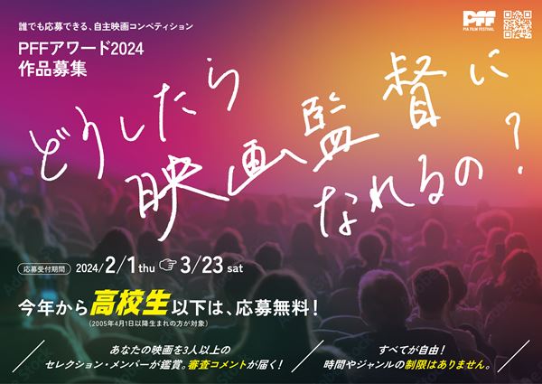 メインプログラムである、自主映画コンペティション「PFFアワード 2024」の公募もまもなくスタート。作品の応募受付期間は、2月1日(木) から3月23日(土) までとなっている。