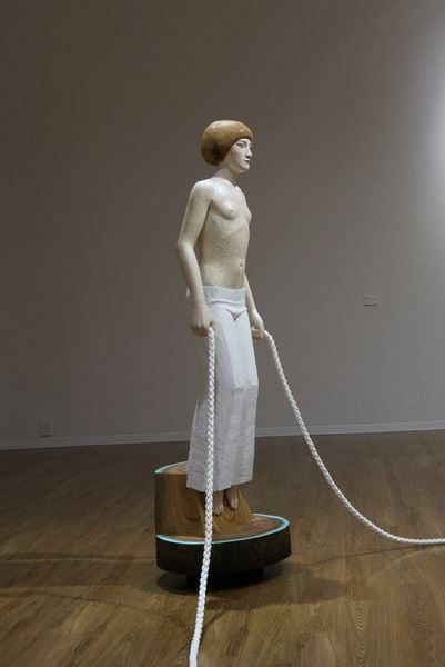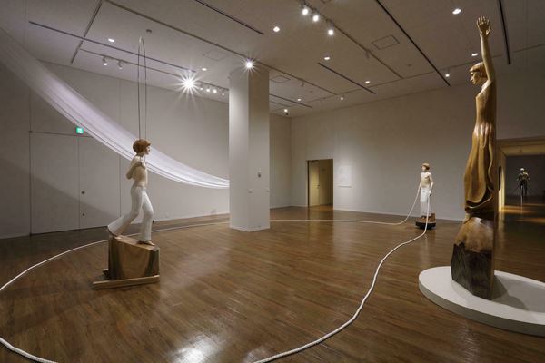 主に伝統的な楠の一木造で、はかなげな少年少女などをモチーフとして現代を映し出すような人物像を制作してきた棚田。第30回平櫛田中賞を受賞し、その記念として2023年10〜11月には、井原市平櫛田美術館で個展「線上に幅を 空間に愛を」が開催された。今回の個展では、このとき発表した2点の新作《地上を取り込むように》《宙を取り込むように》を中心に、新たに制作した作品や90年代の作品などで構成し、棚田の思索の変遷を辿る。