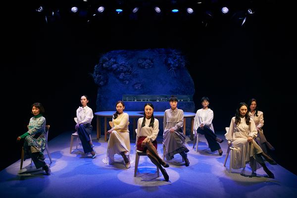 serial number10『アンネの日』より 左から)ザンヨウコ、真田怜臣、橘未佐子、林田麻里、李千鶴、葛木英、瑞生桜子、伊藤弘子 撮影:市川唯人