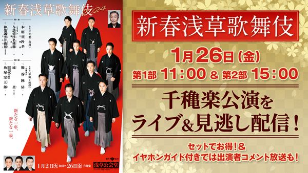 『新春浅草歌舞伎』千穐楽公演の生配信決定 イヤホンガイド解説付き配信も