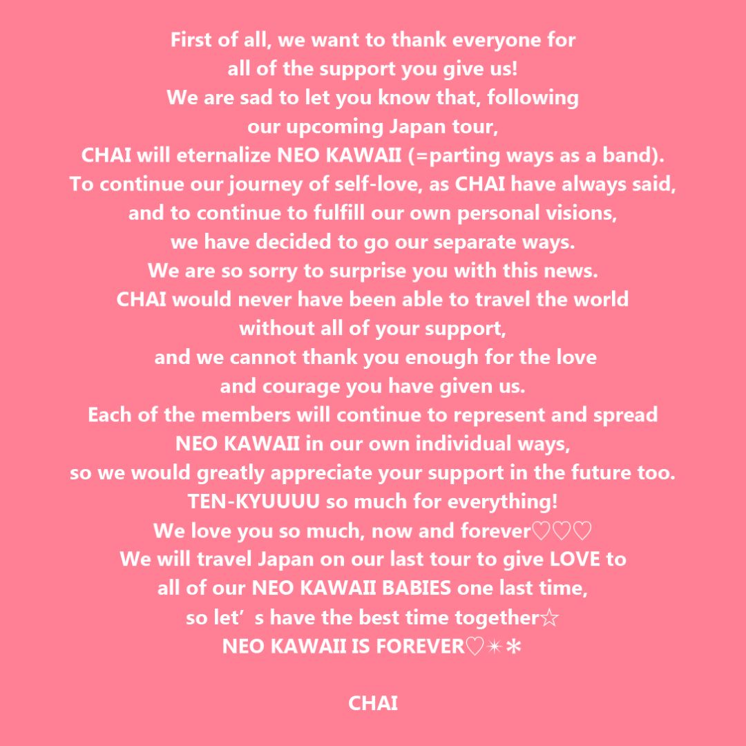 CHAIがバンド活動終了を発表 1月末から開催の『We The CHAI Tour!』がラストツアーに 画像(