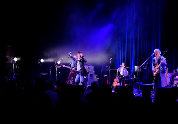 メンバーは、本田"ホンチ"清巳(G)、南"ナンチ"明朗(G)、片山"ポッポ"敦夫(Key)、河村"カースケ"智康(Ds)、という80年代当時からのメンバーたち。そして一昨年に亡くなった春山"ハルボー"信吾(B)に替わって加入した岡部晴彦(B)には、奇しくも同じ"はるちゃん"というニックネームが与えられた。アルバムの曲順通りに演奏は進み、5曲目には平和への祈りを込めて「Foolish War」が演奏された。シンプルだが重厚、メッセージがストレートに心に届く名曲だ。驚くべきは白井のヴォーカルで、声のトーンや歌い方、MCのタイミングまで当時とほとんど変わらない。バンドもアルバムのもつスケール感を見事に再現していて、キャリアを積み重ねた余裕とシブ味がほのかに加わっているのは、理想的な進化といえるだろう。