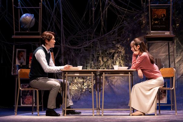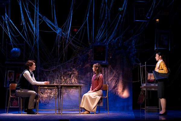 学校机とイスが積み上げ、ぶら下げられ、糸が張り巡らされたようなステージは幻想的で、作品のイメージを見事に表現。冒頭から、チェロとピアノだけの生演奏にキャストたちの歌声が美しく響き合い、その熱量に圧倒される。「白猫」も「黒猫」も実力派がそろっているだけに、その歌声がダイレクトに胸に迫ってくる。